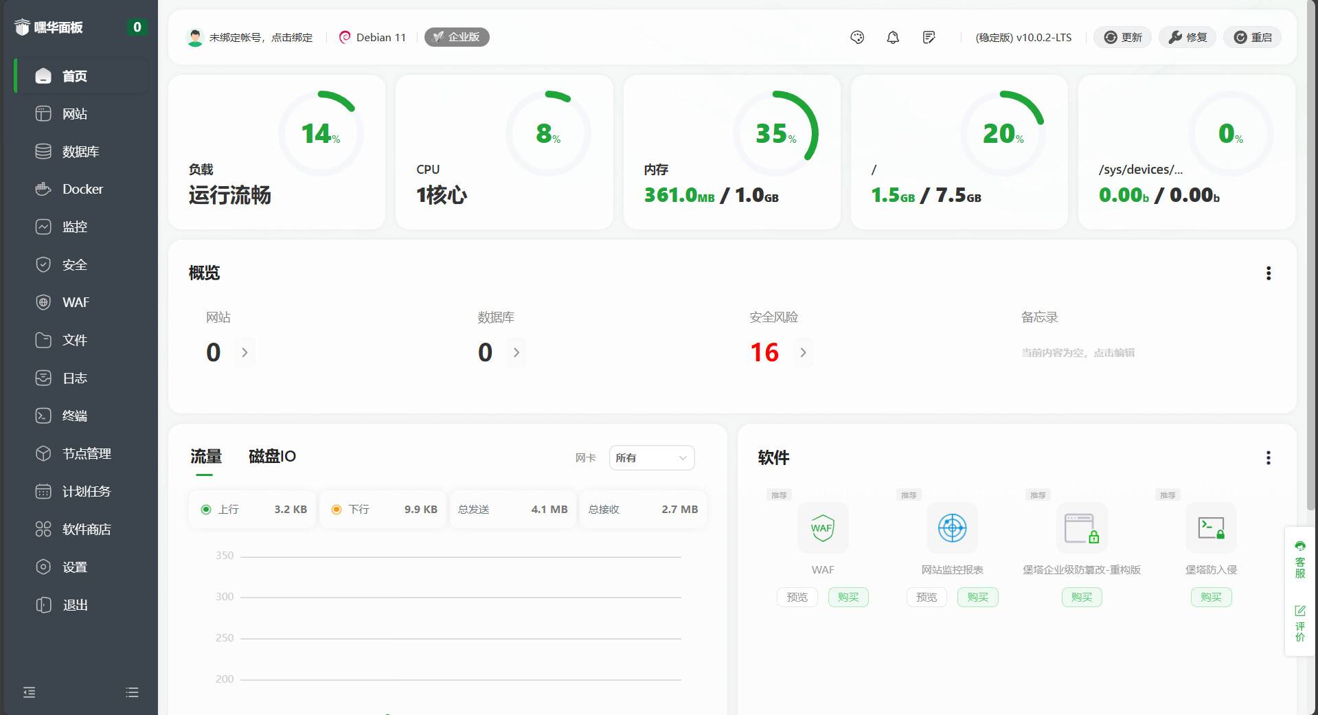 即采用宝塔面板的主机。宝塔面板是国内非常流行的服务器运维面板,可以用非常简单的鼠标操作对服务器进行一键管理。对比EP主机,为独享的环境,即完全掌握主机的权限,数据库亦可以自己安装。支持多种语言编写的web网站,主要支持PHP+Mysql如Golang,Java,Python等。